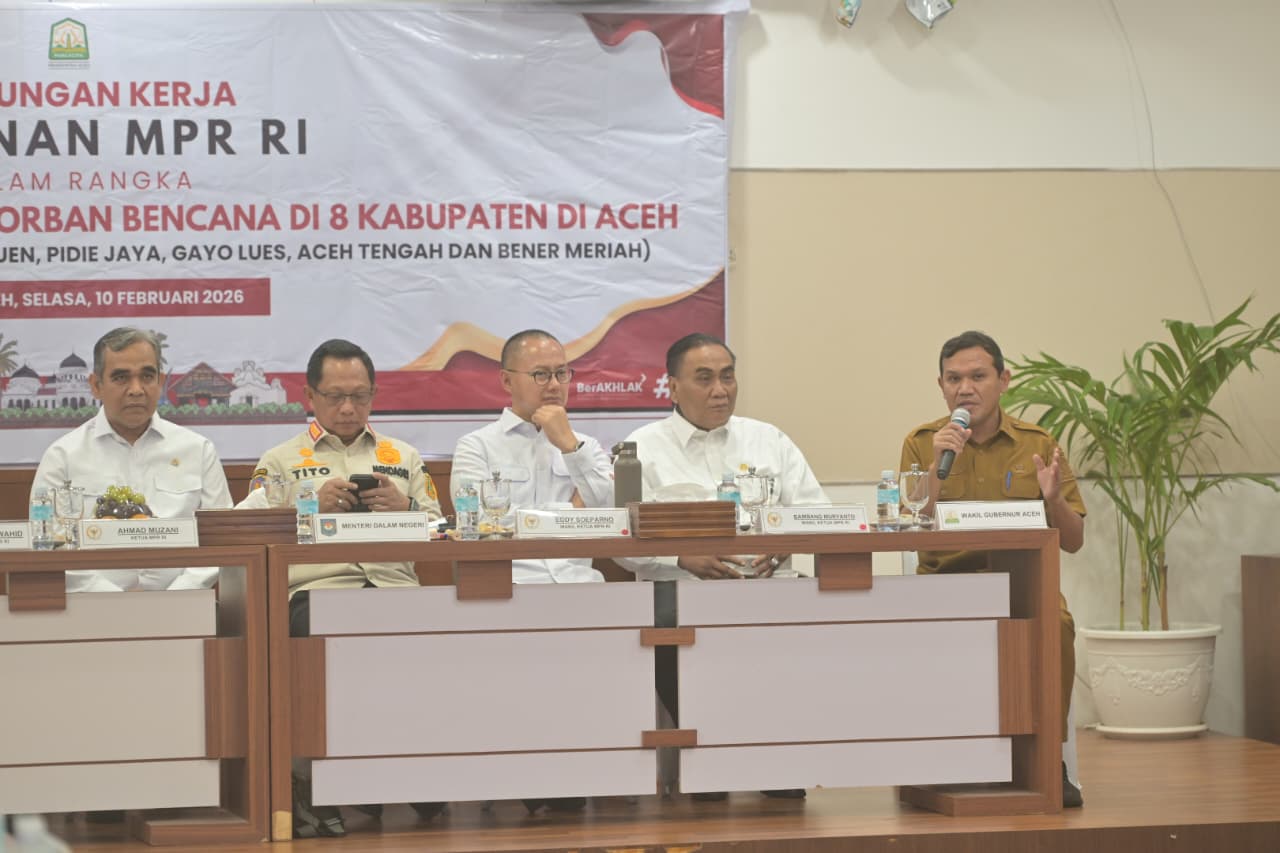 Sebagai informasi, kunjungan pimpinan MPR RI ke Aceh dihadiri Ketua MPR RI Ahmad Muzani serta para Wakil Ketua MPR RI Bambang Wuryanto, Hidayat Nur Wahid, Eddy Soeparno, Edhi Baskoro Yudhoyono, dan A.M. Akbar Supratman. Turut hadir pimpinan fraksi di MPR, Menteri Dalam Negeri Tito Karnavian, perwakilan DPD RI, serta sejumlah pejabat kementerian dan lembaga.