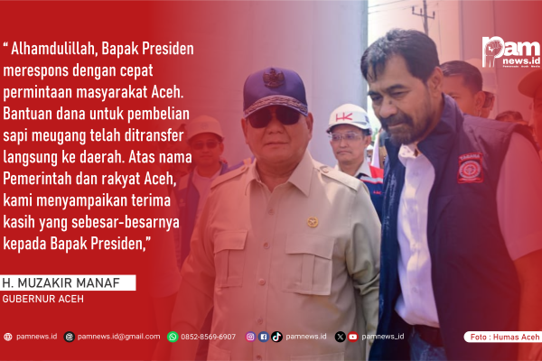 PAMNEWS.ID, BANDA ACEH – Gubernur Aceh Muzakir Manaf (Mualem) menyampaikan apresiasi dan terima kasih kepada Presiden Republik Indonesia Prabowo Subianto…