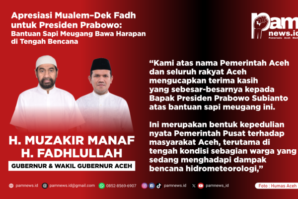 PAMNEWS.ID, BANDA ACEH — Gubernur Aceh Muzakir Manaf (Mualem) dan Wakil Gubernur Aceh, Fadhlullah (Dek Fadh), menyampaikan apresiasi dan terima…